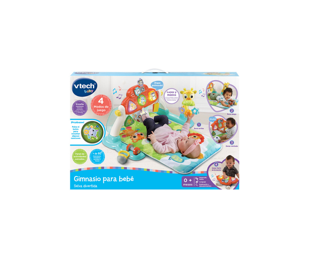 El Gimnasio Selva Divertida de VTech es la manta de actividades perfecta para acompañar a tu bebé desde sus primeros días. Con un diseño colorido y personajes amigables de la selva, convierte cada momento de juego en una experiencia de aprendizaje y ejercicio. Sus modos de juego se adaptan al crecimiento del niño, motivándolo a explorar, moverse y descubrir nuevas habilidades.