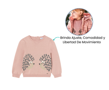 Este jersey de la colección Mayoral destaca por su diseño jacquard, que combina elegancia y suavidad en cada detalle. Su tono aporta un aire delicado y fácil de combinar con cualquier conjunto. Confeccionado en materiales de alta calidad, es ideal para mantener a tu pequeña abrigada en los días frescos sin sacrificar comodidad. El tejido es cálido y suave al tacto, perfecto para la piel sensible de los bebés. Sus acabados cuidados reflejan la excelencia de la marca.