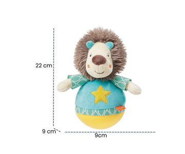 - Juguete de actividades con base oscilante que se balancea y vuelve a su posición.