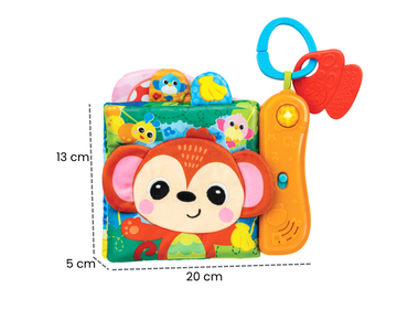 Este encantador libro de actividades permite a tu pequeño presionar botones con forma de pájaro, plátano e iluminación para activar sonidos y melodías llenas de alegría. Estimula la curiosidad, la audición y la coordinación ojo-mano mientras se entretiene. Cada botón es una nueva experiencia sensorial que invita al aprendizaje temprano.