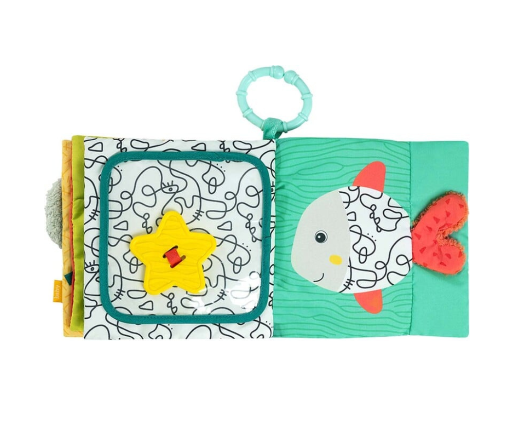 En cada página del libro de dentición Koala, los colores vivos y los patrones atractivos captan la atención del bebé y estimulan su visión. Las texturas rugosas y los distintos materiales lo invitan a tocar y descubrir, fomentando su percepción sensorial y curiosidad natural.