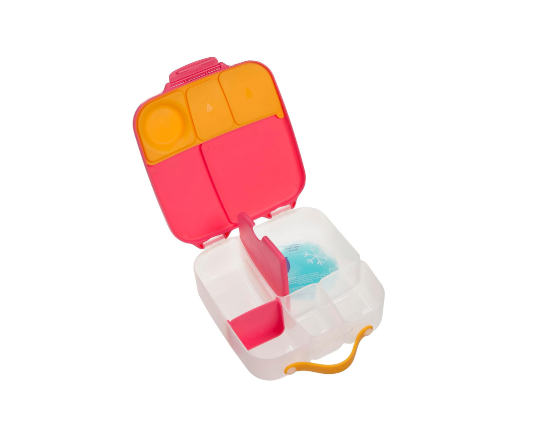 Su amplio compartimento permite guardar un sándwich entero, un bagel o incluso un panecillo sin problemas. La bandeja interior es removible, ideal para pastas o ensaladas. Incluye una práctica bolsa térmica de gel que se coloca debajo para conservar los alimentos frescos por más tiempo.