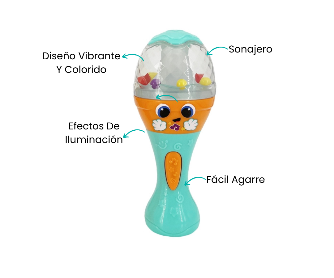 Con este juego interactivo, tu bebé descubrirá el mundo de la música mientras juega. Solo tiene que agitarlo para activar sonidos divertidos y melodías encantadoras. Estimula la coordinación, el ritmo y la creatividad en cada movimiento. ¡Ideal para pequeños músicos en crecimiento!