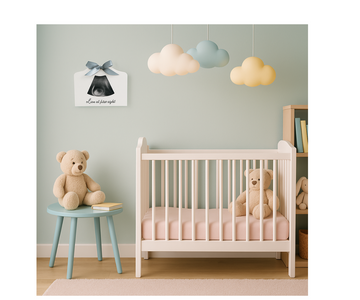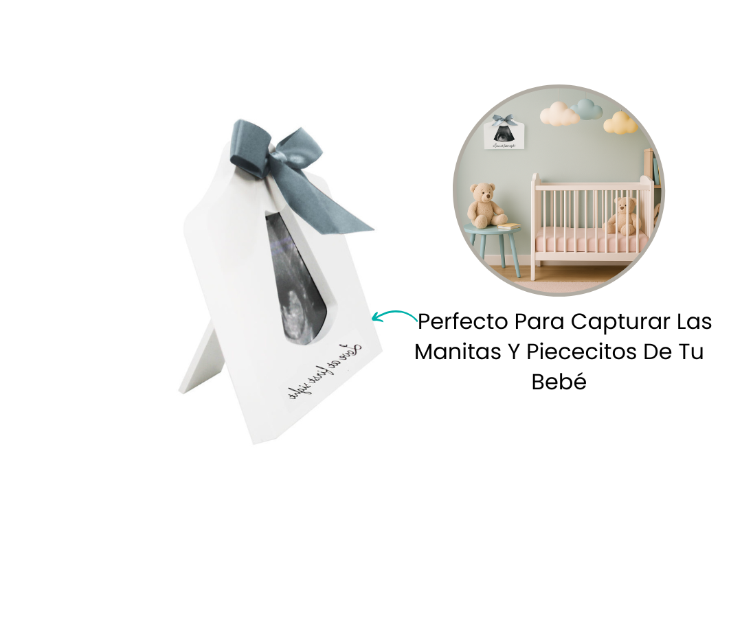 Este encantador marco para ecografía es el detalle perfecto para celebrar la llegada de un nuevo miembro a la familia. Ideal como regalo personal o para anunciar el embarazo a abuelos, papá o seres queridos. Su diseño moderno en color blanco enmarca con ternura una ecografía 2D o 3D de tamaño estándar.