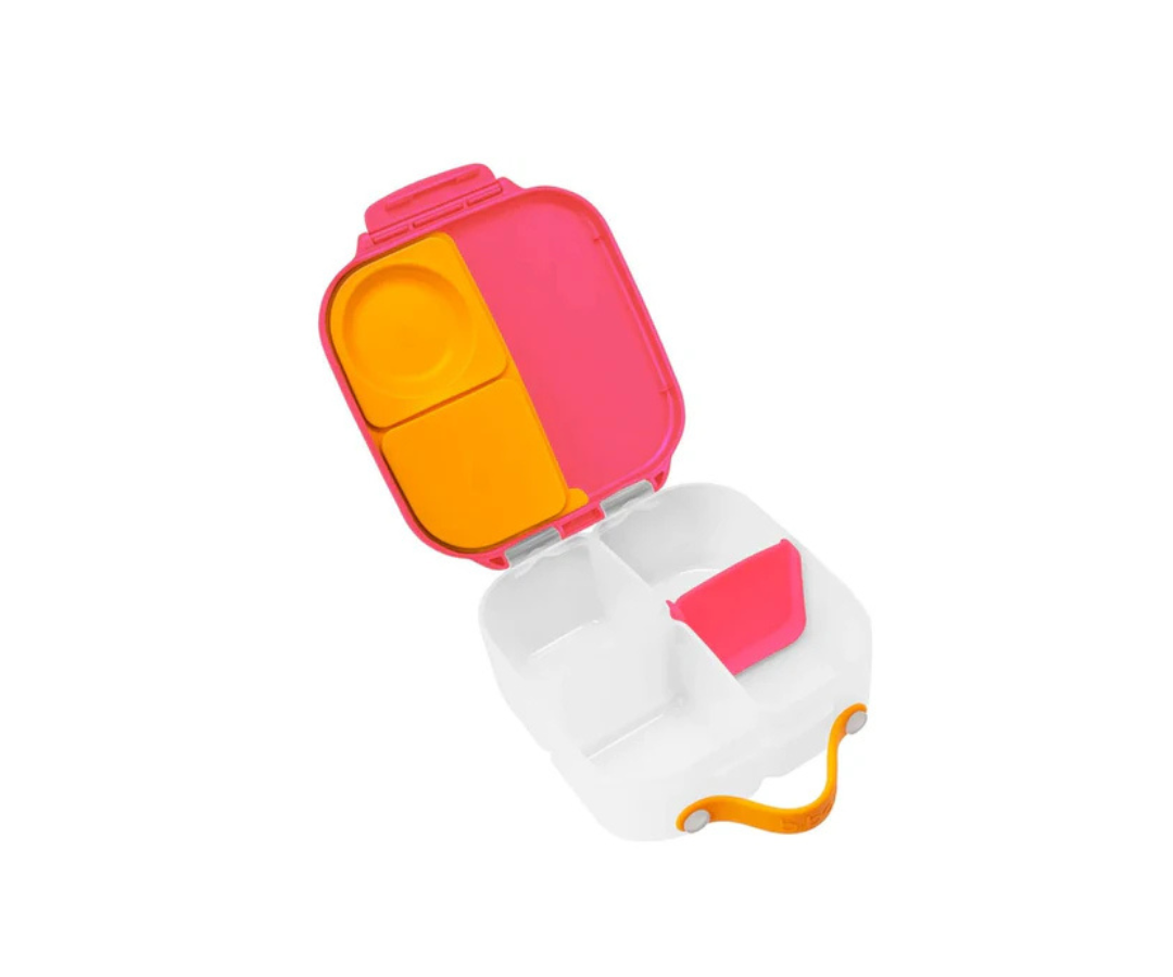 La Mini lonchera cuenta con dos compartimentos sellados, uno de ellos flexible para guardar fruta entera sin aplastarla. Puedes incluir yogur, puré, hummus o frutas jugosas sin preocuparte por derrames. Además, incorpora un espacio no sellado con divisor ajustable para mayor versatilidad. Su diseño tipo maleta, con asa cómoda y cierre práctico, la hace perfecta para llevar a todas partes.