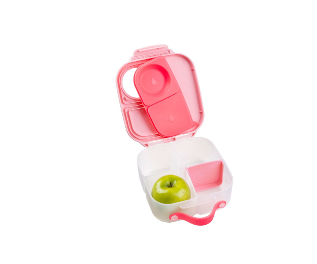 La Mini lonchera cuenta con dos compartimentos sellados, uno de ellos flexible para guardar fruta entera sin aplastarla. Puedes incluir yogur, puré, hummus o frutas jugosas sin preocuparte por derrames. Además, incorpora un espacio no sellado con divisor ajustable para mayor versatilidad. Su diseño tipo maleta, con asa cómoda y cierre práctico, la hace perfecta para llevar a todas partes.