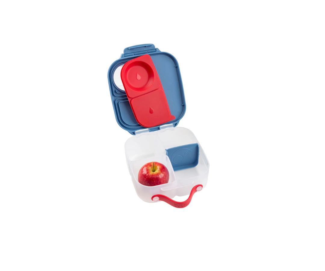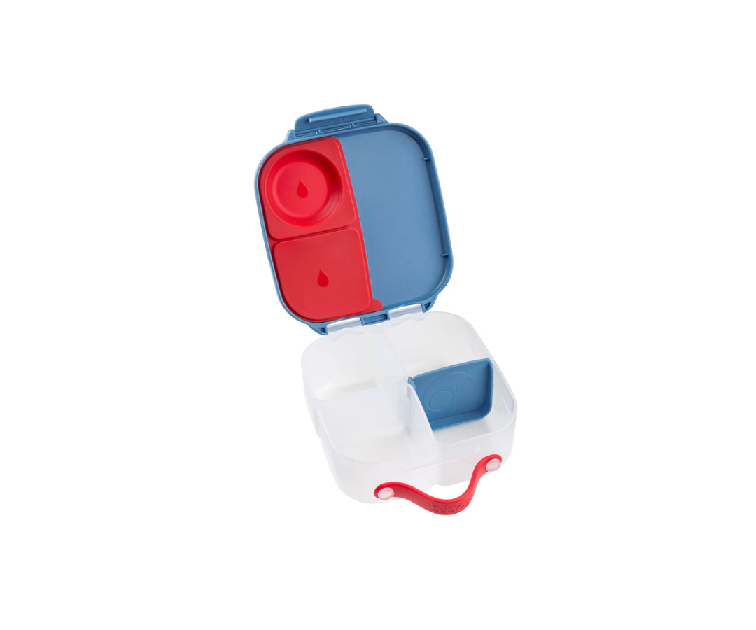 La Mini lonchera cuenta con dos compartimentos sellados, uno de ellos flexible para guardar fruta entera sin aplastarla. Puedes incluir yogur, puré, hummus o frutas jugosas sin preocuparte por derrames. Además, incorpora un espacio no sellado con divisor ajustable para mayor versatilidad. Su diseño tipo maleta, con asa cómoda y cierre práctico, la hace perfecta para llevar a todas partes.