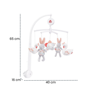Los adorables personajes giran con suavidad al compás de una tierna melodía, creando un ambiente relajante para el bebé. El movimiento pausado y la música tranquila lo envuelven en una sensación de calma y seguridad. Ideal para arrullarlo y acompañarlo hasta que concilie un sueño profundo y reparador.