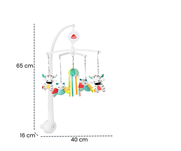 Su soporte estable permite fijarlo de forma segura y sencilla a la cuna, garantizando un uso confiable. Incluye un práctico interruptor para encender o apagar la melodía según se desee. Las figuras de Nicki son extraíbles, ofreciendo la posibilidad de que el bebé juegue con ellas también fuera del móvil.