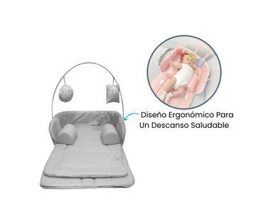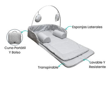 - Incluye esponjas laterales que brindan soporte y seguridad al dormir.