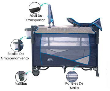 - Buena Ventilación: Los paneles de malla en los laterales favorecen la circulación de aire y mantienen una temperatura agradable para el bebé.