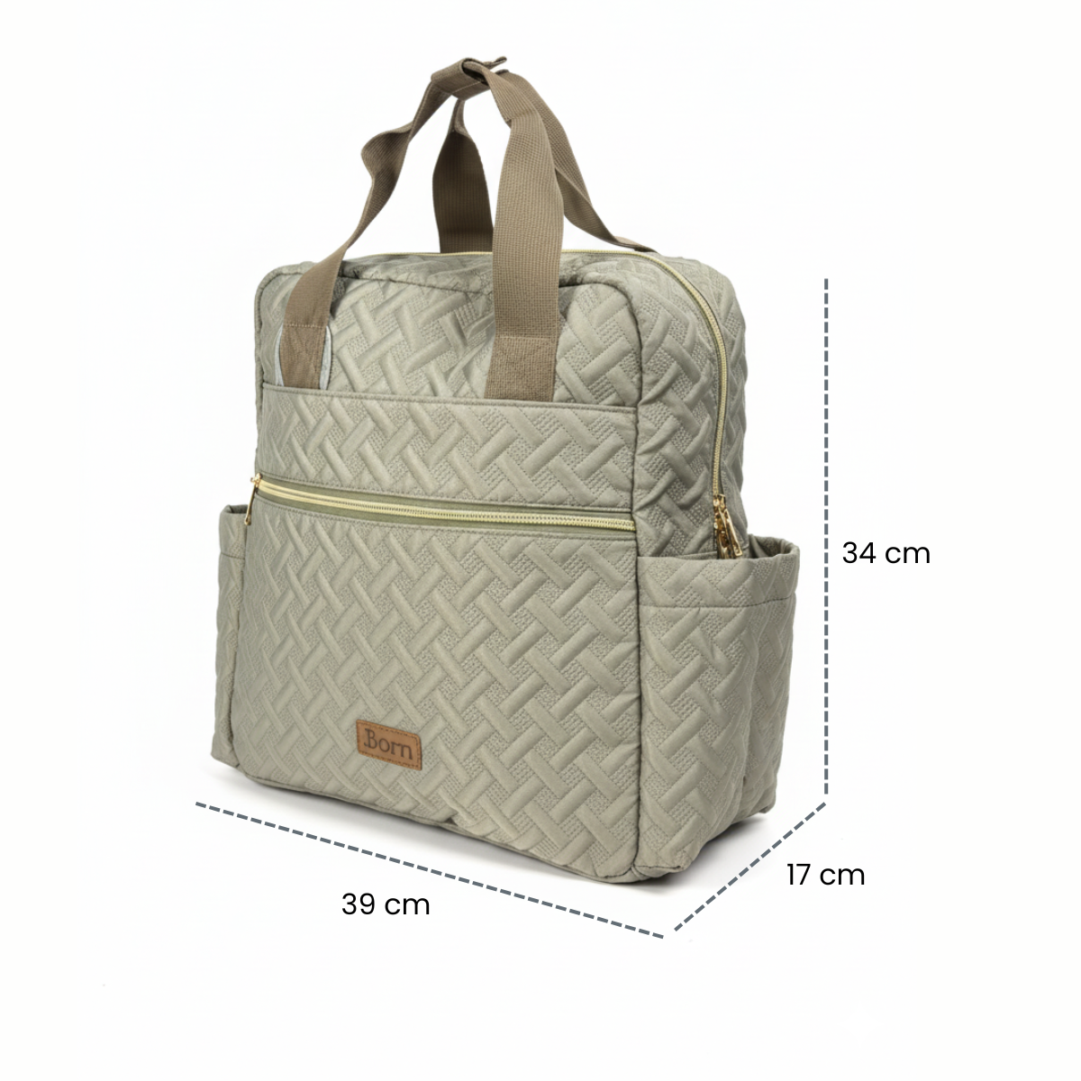 La mochila Born beige está creada para mantener todo en orden durante las salidas con el bebé. Sus múltiples bolsillos, tanto internos como externos, permiten organizar pañales, biberones, ropa y accesorios con facilidad. Fabricada con materiales resistentes y de fácil limpieza, ofrece una experiencia cómoda gracias a sus correas ajustables y su estructura ligera pero firme.