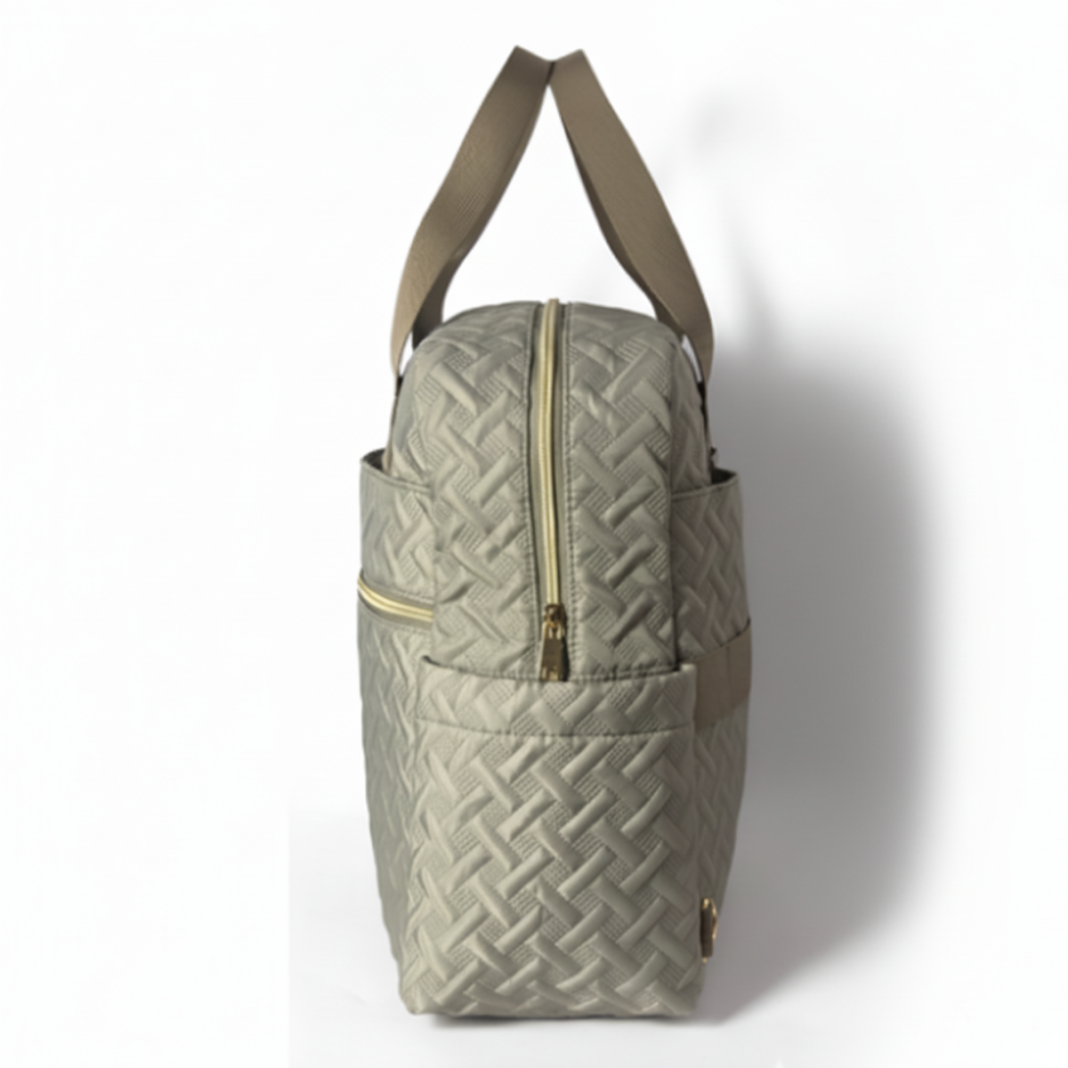 Diseñada para mamás y papás que valoran la practicidad sin renunciar al estilo, esta mochila maternal combina una textura acolchada moderna con un tono neutro que se adapta a cualquier look. Su diseño versátil permite usarla tanto en el día a día como en viajes, ofreciendo espacio, comodidad y una presencia sofisticada que destaca donde vayas.