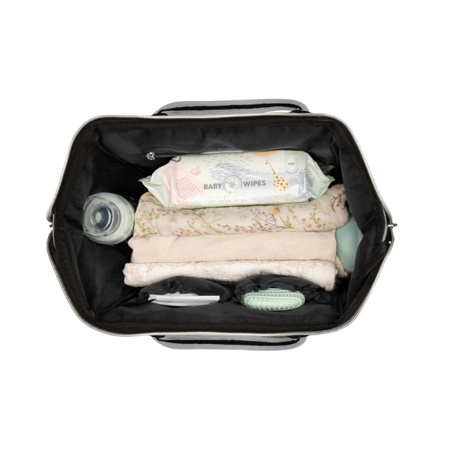 - Bolsillos organizadores internos para pañales y accesorios del bebé.