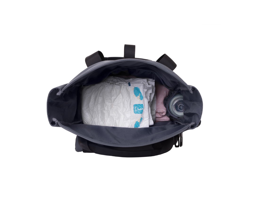 - Bolsillos organizadores para pañales y ropa.