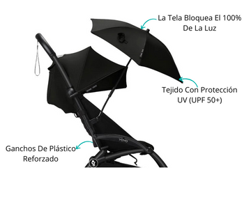 Mantén a tu peque seco en los días de lluvia y protegido del sol cuando brille con esta sombrilla diseñada especialmente para el cochecito YOYO+. Su instalación es rápida y sencilla, permitiéndote acoplarla fácilmente al cochecito o a la silla de coche. Fabricada con materiales resistentes y duraderos, esta sombrilla ofrece protección contra los elementos, asegurando que tu bebé esté siempre cómodo y seguro.