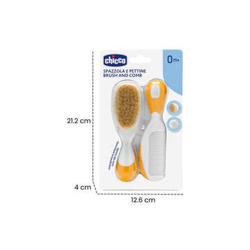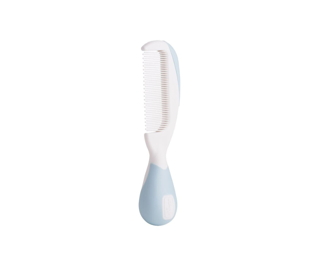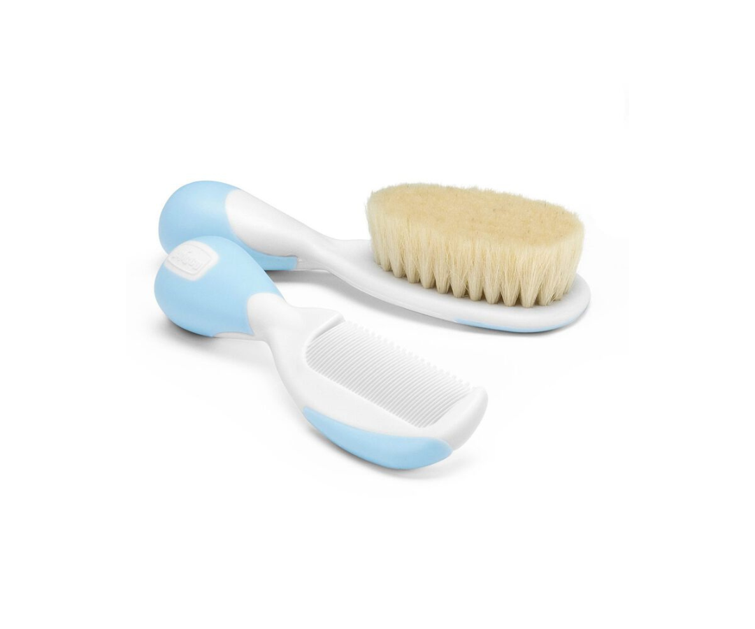 El cepillo con cerdas naturales respeta la delicadeza del cuero cabelludo del bebé, proporcionando un peinado suave y seguro. El peine, con puntas redondeadas, ayuda a desenredar los primeros cabellos sin causar molestias. Ambos cuentan con un mango ancho y antideslizante que facilita el agarre, ofreciendo control y comodidad en cada uso.