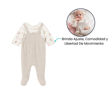 Ideal para salidas familiares o para estar en casa con estilo. Su tejido mantiene al bebé abrigado en los días frescos. El diseño de peto ofrece libertad de movimiento para jugar cómodamente. Una opción perfecta para regalar o completar el armario del bebé.