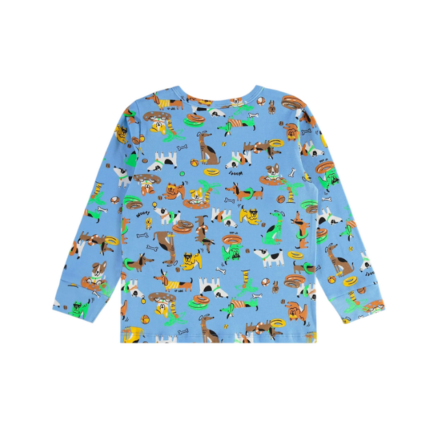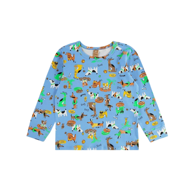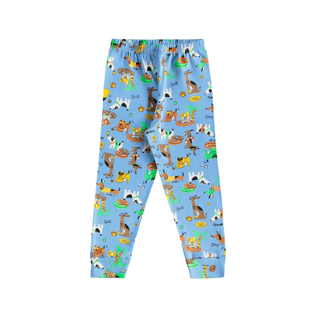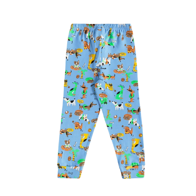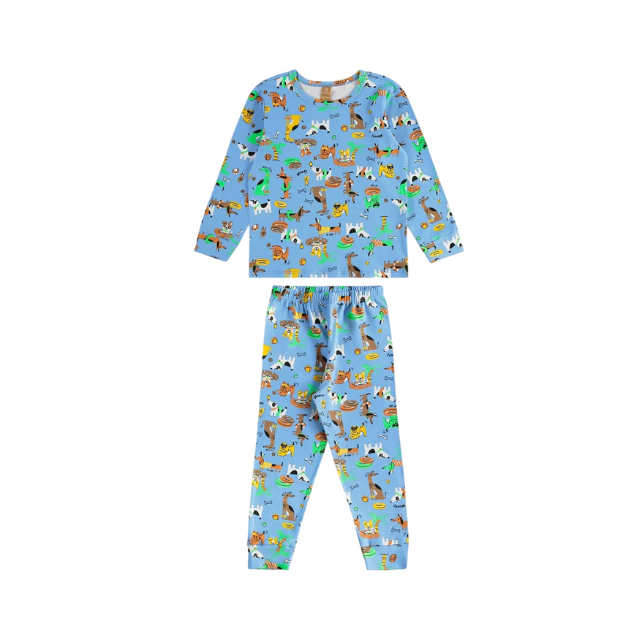 - Pijama largo infantil unisex con estampado en tono azul claro.