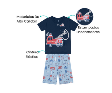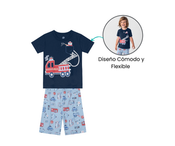 La bermuda, con una cintura elástica, se adapta perfectamente sin apretar, permitiendo que el niño se sienta cómodo en cada movimiento. Un conjunto pensado para mantener a los pequeños felices y confortables toda la noche.