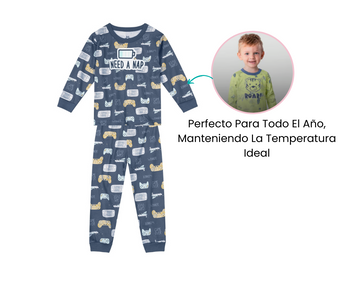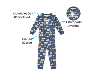 El pantalón, con una cintura elástica, se adapta perfectamente sin apretar, permitiendo que el niño se sienta cómodo en cada movimiento. Un conjunto pensado para mantener a los pequeños felices y confortables toda la noche.