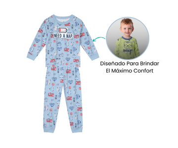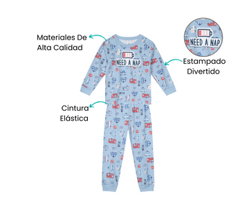 El pantalón, con una cintura elástica, se adapta perfectamente sin apretar, permitiendo que el niño se sienta cómodo en cada movimiento. Un conjunto pensado para mantener a los pequeños felices y confortables toda la noche.