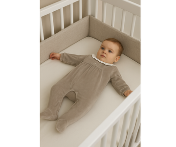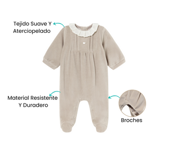 El pijama tundosado nuez de Mayoral es una prenda ideal para acompañar el descanso de los más pequeños con máximo confort. Su tejido suave y aterciopelado envuelve al bebé en una sensación de calidez y ternura. El tono nuez aporta un aire elegante y natural, perfecto para las noches más frescas del año