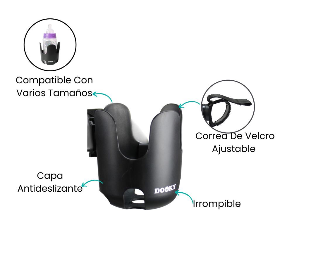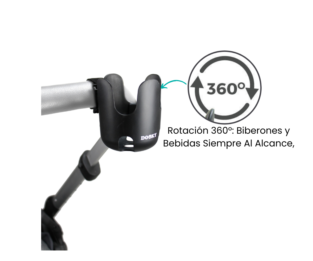 El portavasos Dooky es el aliado perfecto para padres activos que aman los paseos. Su diseño universal se adapta a cualquier cochecito o silla de paseo, y su fijación es rápida y segura. Gracias a su rotación de 360°, mantiene biberones, vasos o botellas siempre al alcance. ¡Práctico, flexible y listo para cada aventura!