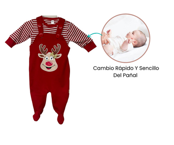 - Incluye dos piezas overol con diseño de reno y camiseta de algodón.