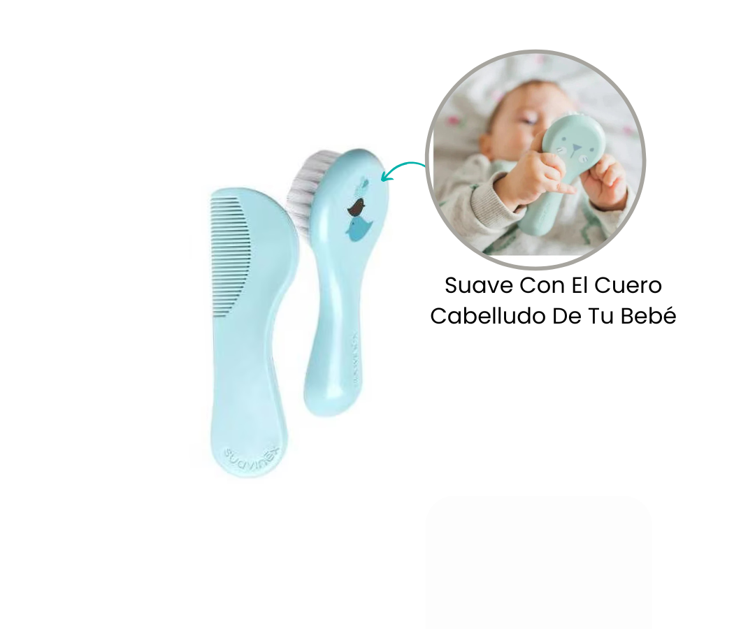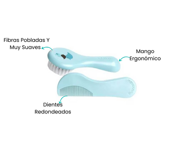 Set perfecto de cepillo y peine diseñados especialmente para el delicado cabello de los más pequeños! Ha sido creado con un cuidado excepcional para ofrecer el máximo confort y seguridad desde el primer día de vida del bebé. Sabemos que cada bebé es único, y es por eso que hemos desarrollado un conjunto de herramientas versátiles que se adaptan a diferentes tipos de cabello, manteniendo el cuero cabelludo de tu pequeño siempre protegido.