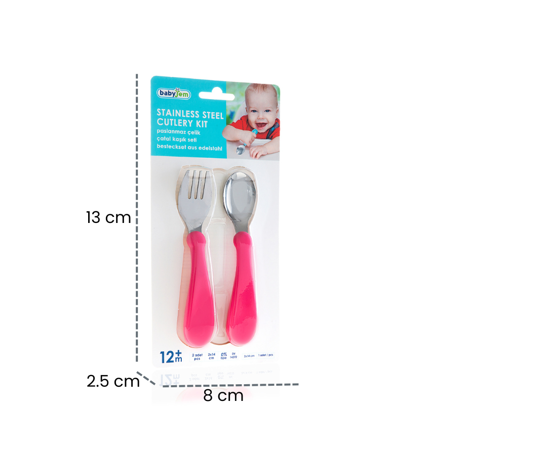 El juego de tenedor y cuchara de acero inoxidable Babyjem está pensado para adaptarse a las manitos pequeñas de los niños. Su diseño ergonómico facilita el agarre y promueve la autonomía al comer. Fabricado con materiales seguros y duraderos.