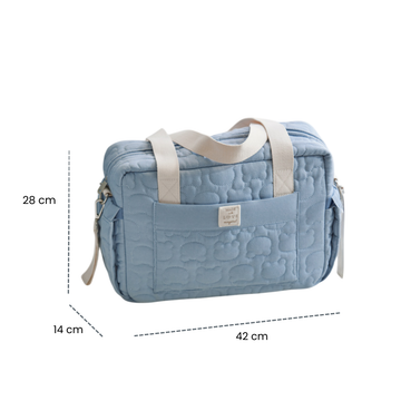 Pensado para mantener todo en orden durante paseos, visitas médicas o viajes, permite guardar mudas de ropa, pañales, biberones y accesorios de cuidado diario. Su estructura acolchada proporciona protección y comodidad al manipularlo, mientras sus asas resistentes facilitan el traslado, ya sea al hombro o en la mano. Es una herramienta indispensable para padres que valoran el orden y la practicidad sin sacrificar estética.