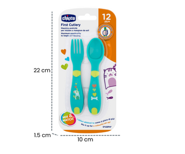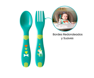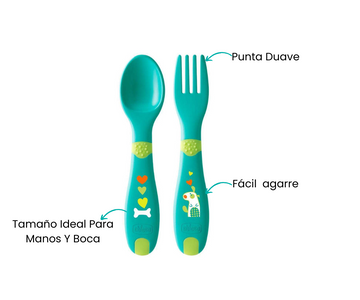 Ayuda a tu pequeño a iniciarse en la alimentación independiente con este set de tenedor y cuchara diseñados para niños de 12 meses en adelante. Con bordes redondeados para mayor seguridad y un tamaño perfecto para sus manitas, estos cubiertos hacen que aprender a comer sea más fácil y divertido.