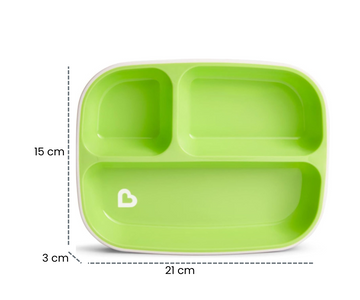 - El juego incluye (2) platos divididas con fondos antideslizantes.