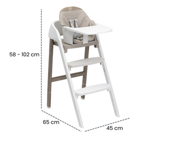 - Regulable en altura, que permitirá integrar al bebé en las comidas adultas.