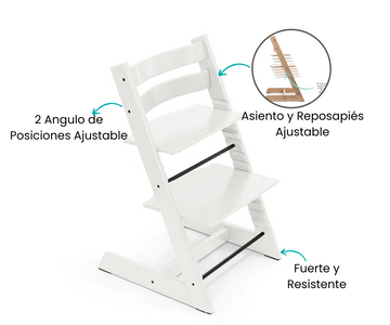 La Silla de Comer Tripp Trapp en Blanco Wash es mucho más que una simple silla; es una inversión inteligente en la comodidad, la seguridad y la cercanía familiar en las comidas. Proporciona un asiento ergonómico a medida que tu hijo crece, y su diseño versátil se adapta perfectamente a tu mesa de comedor. Es la elección ideal para familias que valoran la calidad y el diseño en su vida cotidiana.