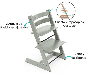 La Silla de Comer Tripp Trapp en Glacier Green es mucho más que una simple silla; es una inversión inteligente en la comodidad, la seguridad y la cercanía familiar en las comidas. Proporciona un asiento ergonómico a medida que tu hijo crece, y su diseño versátil se adapta perfectamente a tu mesa de comedor. Es la elección ideal para familias que valoran la calidad y el diseño en su vida cotidiana.