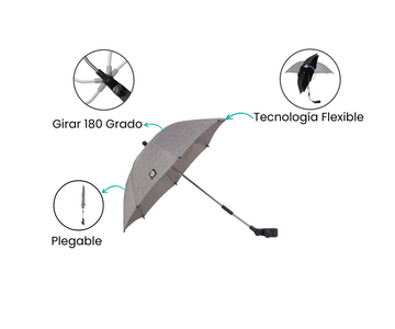 - Tecnología flexible permite doblar el brazo de la sombrilla tanto arriba como abajo.