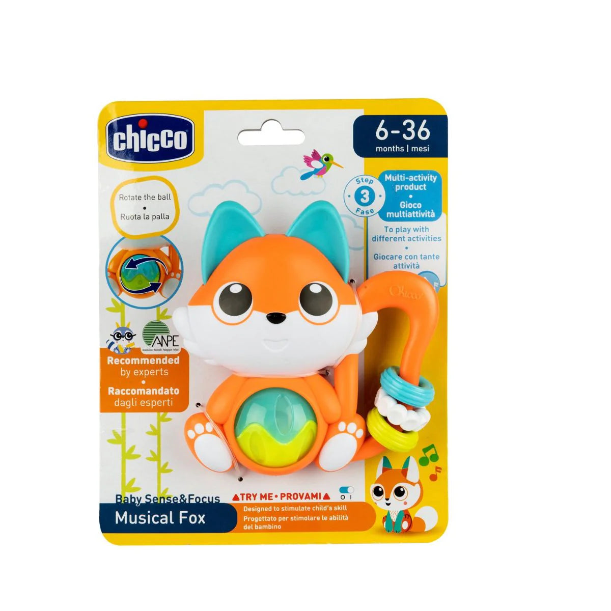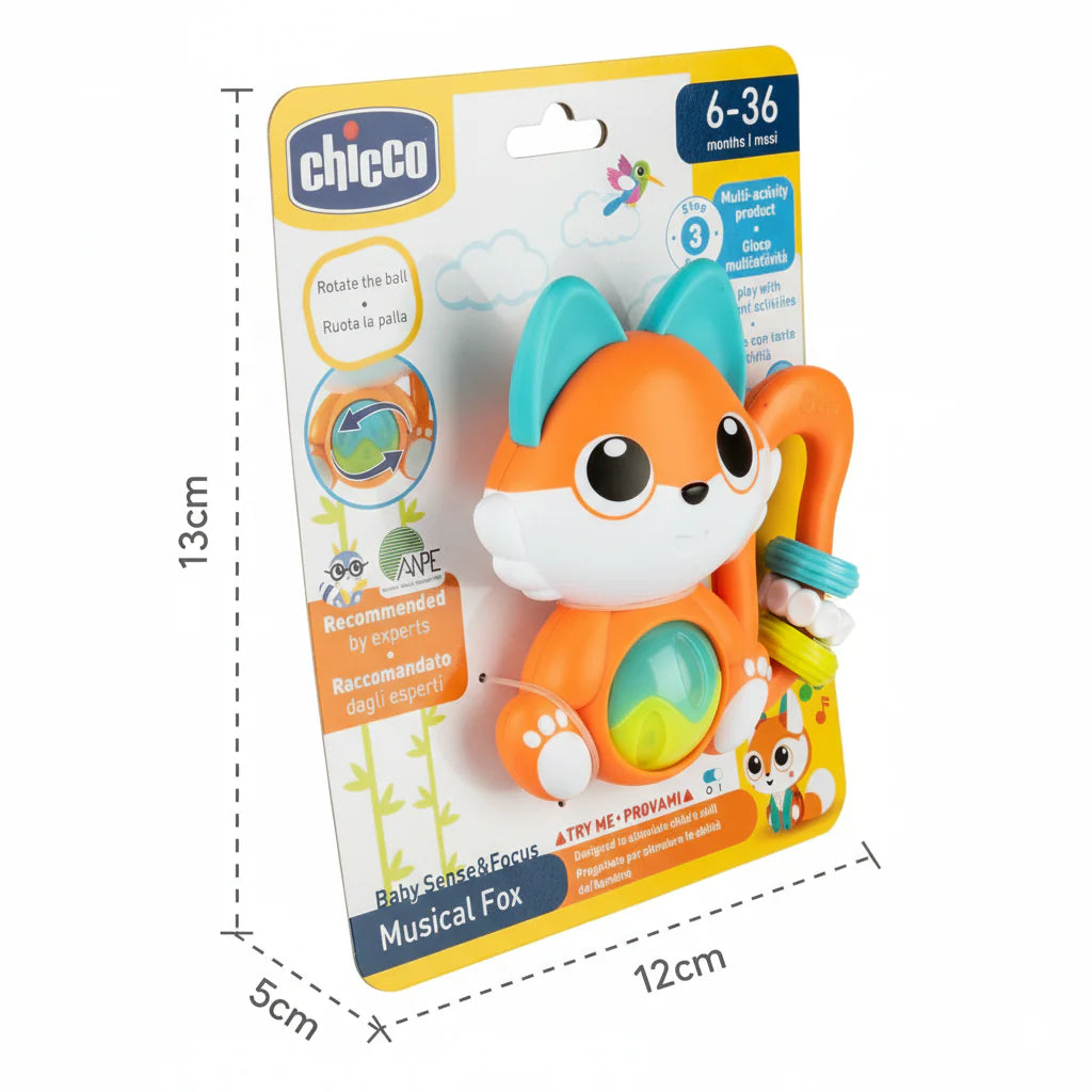 El sonajero electrónico Musical Fox de Chicco está diseñado para acompañar al bebé en sus primeros descubrimientos. Con luces, sonidos y diferentes texturas, este tierno zorro estimula los sentidos, la coordinación y la curiosidad desde los primeros meses. Perfecto para sostener, agitar y explorar, combina melodías suaves con actividades manuales que fomentan el desarrollo sensorial.