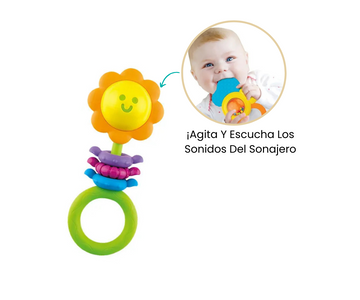 ¡Agita y escucha los sonidos del sonajero! El set de Sonajeros Jardín Surtido x 4 es perfecto para estimular los sentidos de tu bebé mientras juega. Sus colores vibrantes y texturas variadas promueven el desarrollo sensorial y la coordinación.