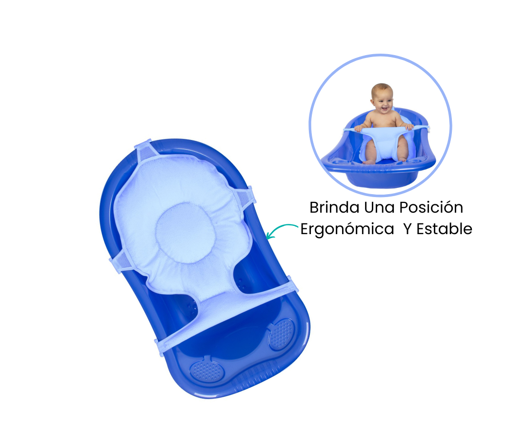 Este soporte de baño brinda una posición ergonómica y estable, ideal para recién nacidos. Su interior cuenta con espuma de poliestireno con perlas, lo que permite un secado rápido y evita la acumulación de humedad. El diseño transpirable y acolchado cuida la delicada piel del bebé. Una opción práctica, higiénica y saludable para el baño diario.