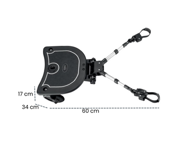 - Gracias a sus adaptadores telescópicos, la plataforma se puede fijar a una amplia variedad de cochecitos, incluyendo el modelo CAM V350.