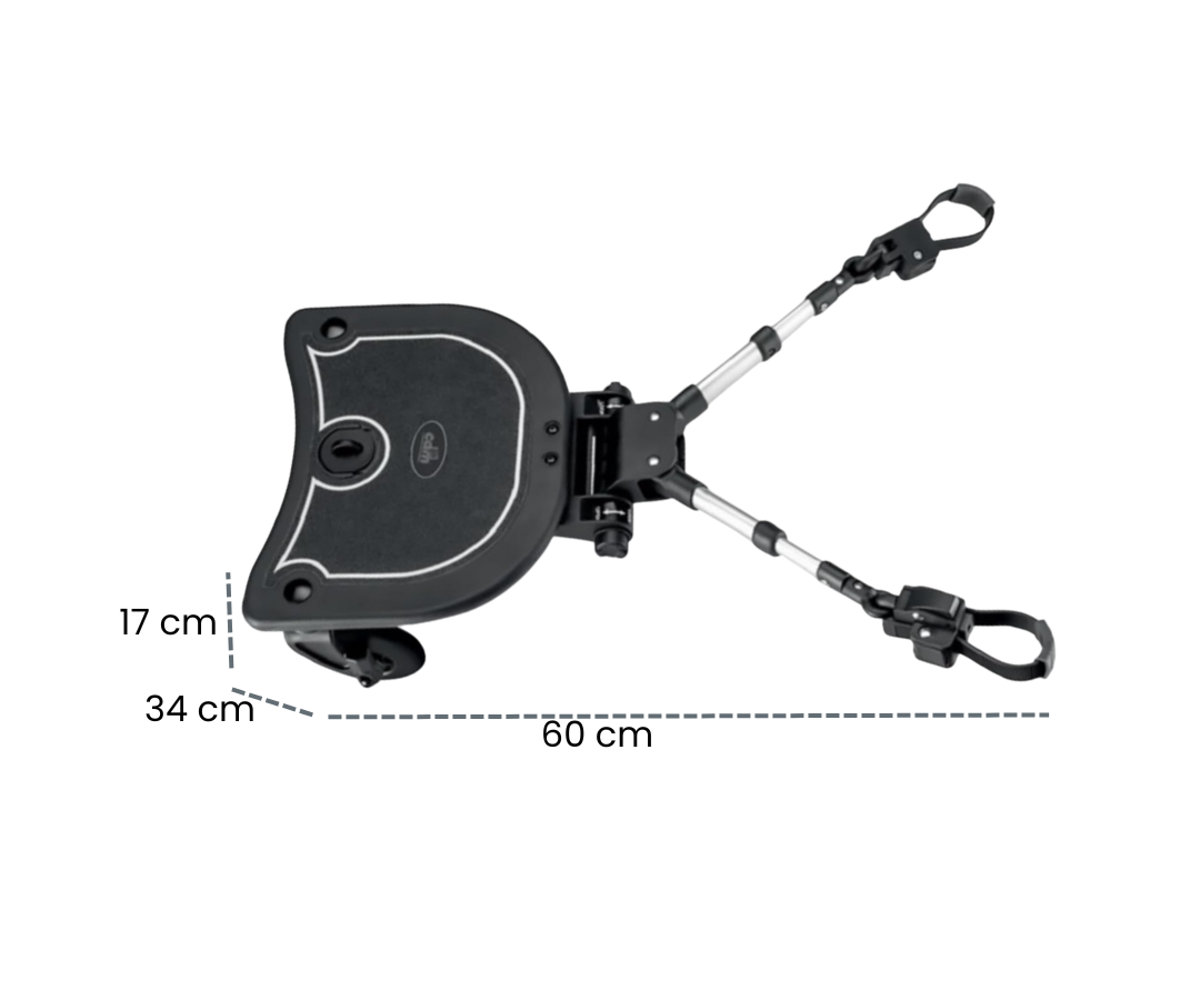 La plataforma se puede fijar a una amplia variedad de cochecitos