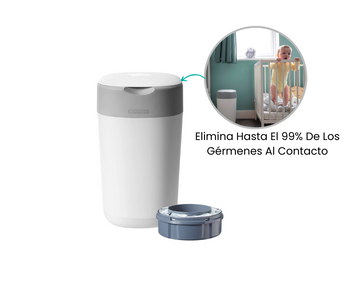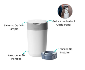 El único basurero de pañales que ofrece una protección superior al girar y envolver cada pañal individualmente. Gracias a su película de plástico antibacteriana de múltiples capas, sella eficazmente los gérmenes y olores. Su sistema innovador garantiza un ambiente más higiénico y fresco en la habitación del bebé. Ideal para mantener la limpieza sin complicaciones.