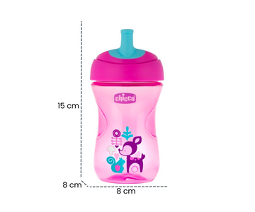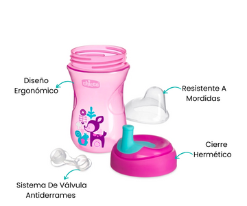 Este vaso está especialmente diseñado para ayudar a los pequeños a desarrollar la habilidad de beber con popote. Su boquilla redonda y semi-suave, resistente a mordidas, es perfecta para las primeras etapas. Además, su forma ergonómica fomenta una postura correcta al beber, asegurando comodidad y practicidad.