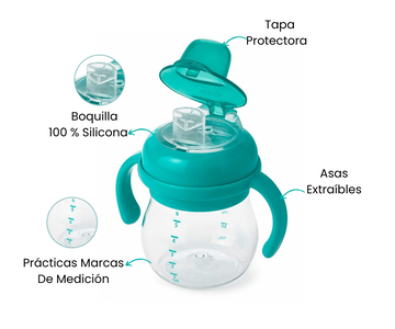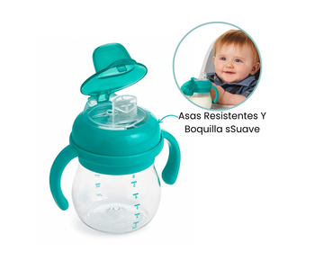 El vaso de 6 Oz. con asas en color verde es ideal para niños de 6 meses en adelante. Con una boquilla de silicona suave de una sola pieza, aseguramos un aprendizaje sin derrames, mientras que las asas resistentes y la forma contorneada ofrecen un agarre fácil de manejar. ¡Haz que la transición a los vasos sea una experiencia cómoda y segura para tu pequeño!
