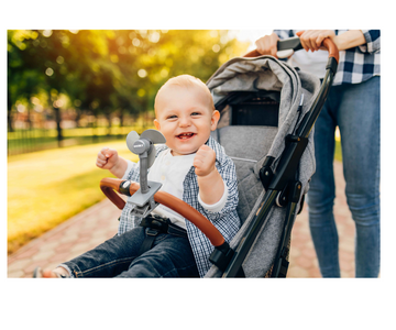 - Se engancha a cualquier barra de cochecito.