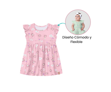 Su diseño incluye detalles que aportan un toque alegre y divertido. Además, su corte cómodo permite libertad de movimiento, ideal para que la bebé juegue y explore con total facilidad. Perfecto para los días de verano, combina estilo y comodidad en una sola pieza.