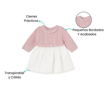 - Vestido de bebé combinado con parte superior en suave tejido tricot.