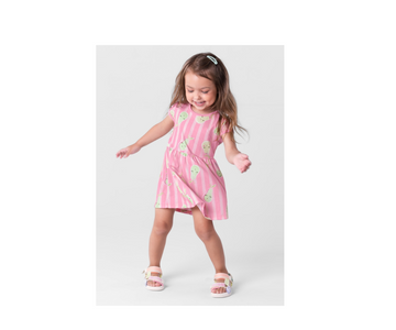 Su diseño incluye detalles que aportan un toque alegre y divertido. Además, su corte cómodo permite libertad de movimiento, ideal para que la bebé juegue y explore con total facilidad. Perfecto para los días de verano, combina estilo y comodidad en una sola pieza.